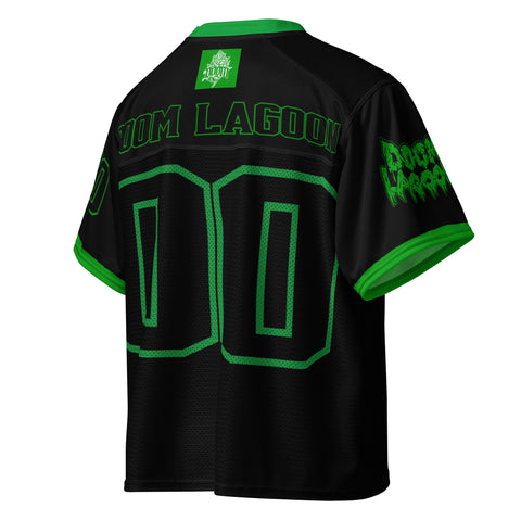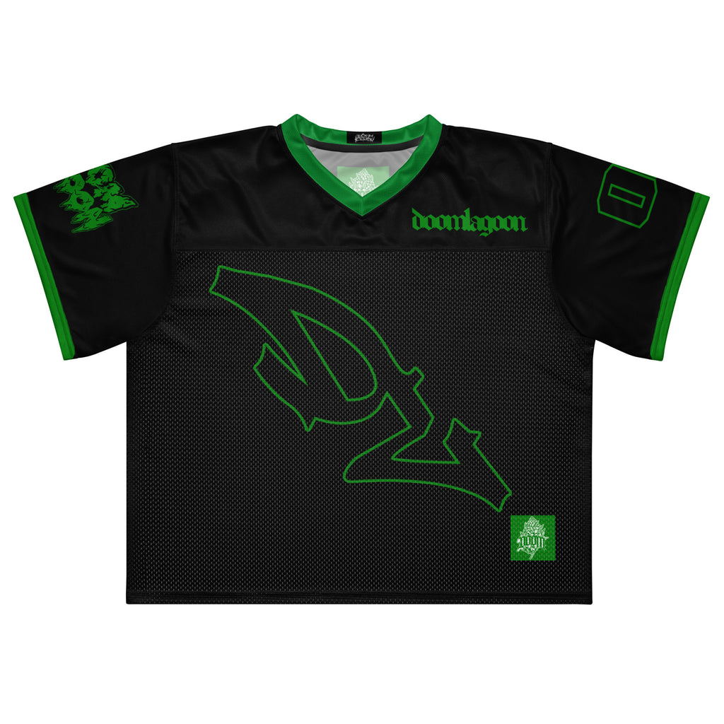 A breathable football jersey with silky top fabric and heavy mesh bottom. Moisture-wicking, 2-way stretch, and relaxed fit.