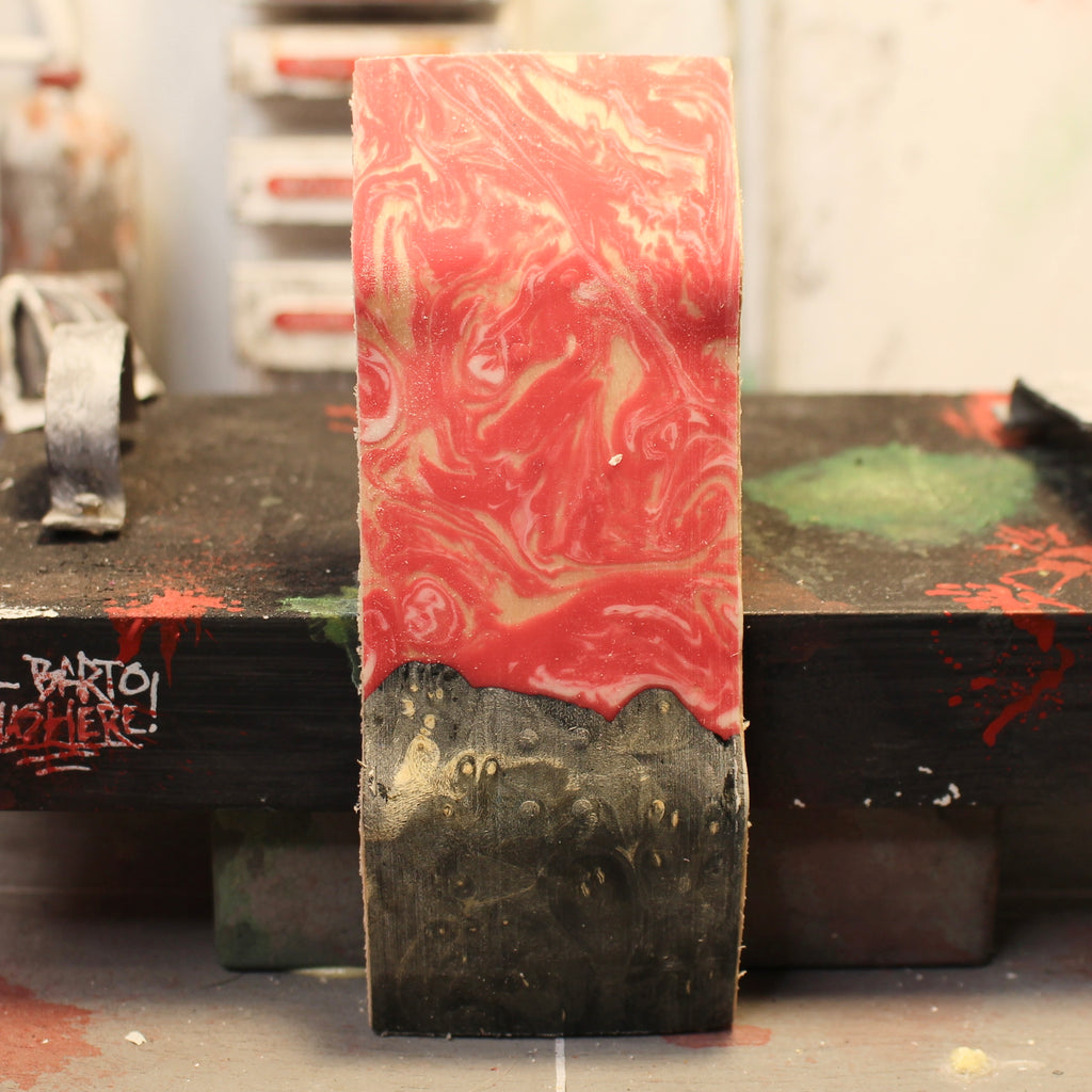 Doom Lagoon fingerboard decks are the result of nearly a decade of deck making experience by Noah Schlosser. Avant-garde shapes, materials, and production methods have been thoroughly tested to ensure one of the most realistic feeling fingerboard decks. Rather than the board being scaled to the size of an actual skateboard, it is scaled to the length of our legs relative to our fingers. This progressive design allows you to position your fingers the same way you would on an actual skateboard. All Doom Lagoon fingerboard decks have medium concave and medium/high kicks designed with performance in mind. The nose is slightly higher than the tail, just like a real skateboard, to allow your front finger to slide up the board and catch the nose for ollies and other flip tricks. Each deck is made of carefully curated hardwoods in unique lay-ups to ensure the most pop and structural integrity. Plies are dyed for at least 3 weeks to ensure all dye has penetrated through the veneer all the way for a vibrant look. Holes are machine drilled with extreme precision to allow trucks to perfectly fit each and every time in the exact spot for peak performance. All Doom Lagoon fingerboard decks are lacquered with three coats on each face, sealing the wood. This adds pop and durability, as well as a glossy shine.