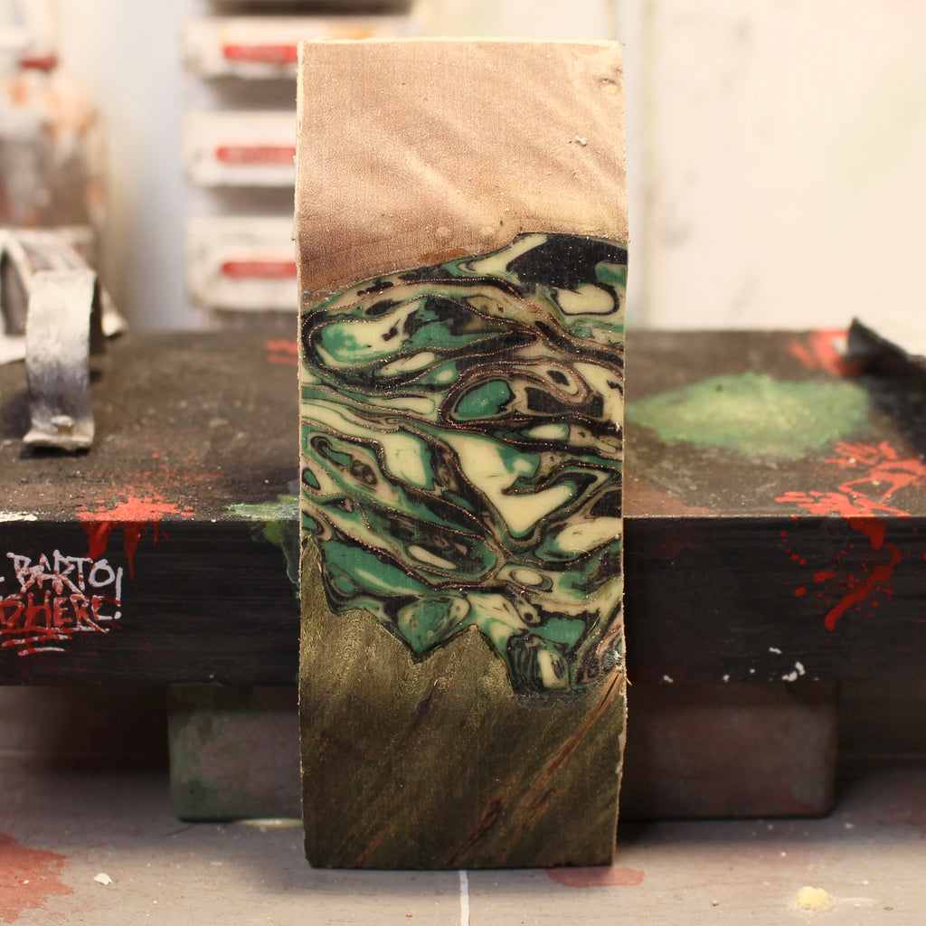 Doom Lagoon fingerboard decks are the result of nearly a decade of deck making experience by Noah Schlosser. Avant-garde shapes, materials, and production methods have been thoroughly tested to ensure one of the most realistic feeling fingerboard decks. Rather than the board being scaled to the size of an actual skateboard, it is scaled to the length of our legs relative to our fingers. This progressive design allows you to position your fingers the same way you would on an actual skateboard. All Doom Lagoon fingerboard decks have medium concave and medium/high kicks designed with performance in mind. The nose is slightly higher than the tail, just like a real skateboard, to allow your front finger to slide up the board and catch the nose for ollies and other flip tricks. Each deck is made of carefully curated hardwoods in unique lay-ups to ensure the most pop and structural integrity. Plies are dyed for at least 3 weeks to ensure all dye has penetrated through the veneer all the way for a vibrant look. Holes are machine drilled with extreme precision to allow trucks to perfectly fit each and every time in the exact spot for peak performance. All Doom Lagoon fingerboard decks are lacquered with three coats on each face, sealing the wood. This adds pop and durability, as well as a glossy shine.